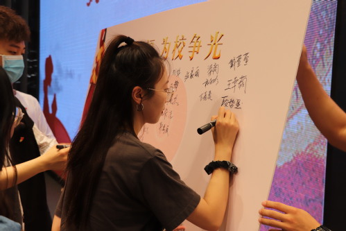 李义同学带领全体党员共同作出承诺,承诺永葆中国共产党人的初心本色,以“功成不必有我”的精神境界和“功成必定有我”的历史担当,在新征程、新起点上谱写新篇章。所有党员逐一签署了承诺书。