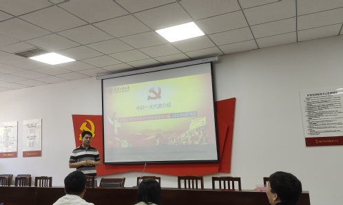 签约仪式后,应用化学专业学生党支部书记刘海龙和学生党员黄娜岚、肖宇、刘思嘉以“师生合讲一堂党课”的形式为与会党员带来一场精彩的党史分享。他们生动讲述了中国共产党第一次代表大会召开的情况,讲述了毛泽东、董必武、陈潭秋、王尽美、邓恩铭等一大代表的革命事迹。党课准备充分,内容详实,是一堂生动的党史教育课。