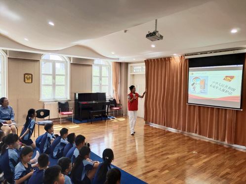 随后,法学院学生党员王心宇和陈拴龙对华兰萨顿国际学校的学生们进行了法制安全教育宣讲,为学生们讲解了什么是法律,带领大家了解《预防未成年人犯罪法》和《未成年人保护法》,帮助大家增强自我防范意识,避免受到不法侵害。