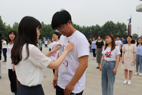 党徽熠煜,青春正好,一首《义勇军进行曲》开启了宣誓仪式,入党誓词庄严郑重。学院党委书记郭翠娟作为领誓人,带领各支部书记和新发展党员举起右手,面向党旗庄严宣誓,以表达对党忠诚永不叛党和愿意为共产主义奋斗终身的决心。随后,各党支部书记为此次新发展的党员同学佩戴上了党徽。
