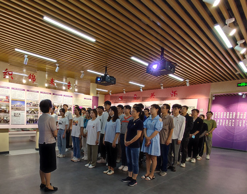 随后,师生党员参观了校史馆。档案馆副馆长刘东为大家作讲解。大家先后参观了历史渊源、现代成果、未来愿景三个主展厅以及校友活动板块等专题展区。展馆内丰富详实的历史资料、饱经风霜的实物展品和生动感人的影像资料,生动地再现了学校从建校之初筚路蓝缕发展至今的奋斗历程,到场师生党员体验了一场别开生面的“红色课堂”。