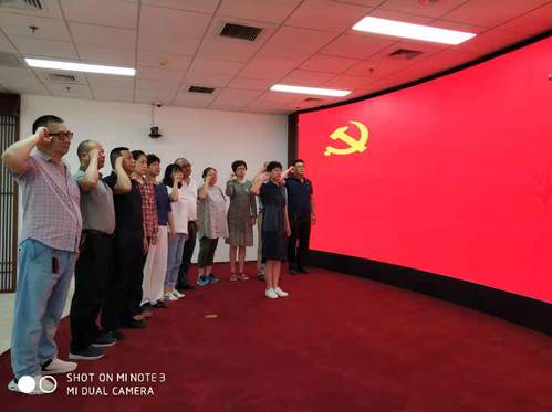 观影之后,全体党员面向党旗,庄严地举起右手,重温入党誓词,再次领悟初心使命,接受精神洗礼。