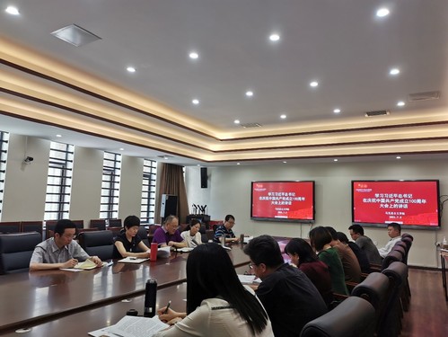 2021年7月1日,习近平总书记在庆祝中国共产党成立100周年大会上的重要讲话在天津工业大学马克思主义学院全体师生中引发热烈反响,并掀起广泛的学习热潮。为推动学习向深里走、实里走,马克思主义学院党委积极创新学习形式,于2021年7月5日召开了学习习近平总书记在庆祝中国共产党成立100周年大会上的讲话系列活动,学院领导班子成员、各系部主任、支部书记和教师代表与会。