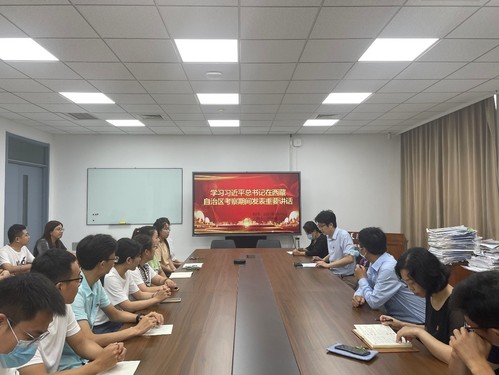 博士生第三党支部组织委员宋丹青带领党员师生学习习近平总书记在西藏考察期间发表的重要讲话精神。纪检委员陈萌分享自己近期学习党史的心得体会,倡导在座的党员知史爱党、知史爱国。