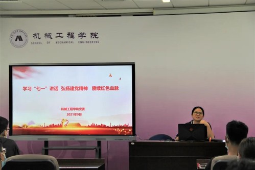 为深入学习贯彻习近平总书记“七一”重要讲话精神,加强新生入党启蒙教育,推进机械工程学院学生党史学习教育往深里走、往实里走,2021年9月22日、23日下午,机械工程学院党委书记覃兰静在学院E410和F309分三场做了题为《学习“七一”讲话 弘扬建党精神 赓续红色血脉》的“党史”党课。2021级全体本科新生共335位同学聆听了党课。