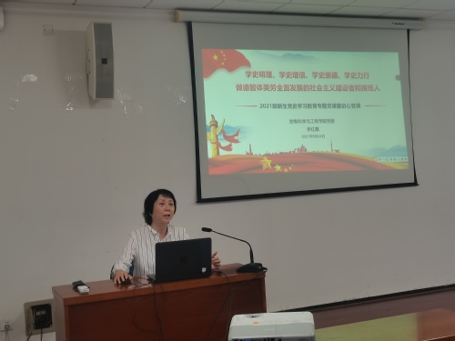 为进一步深入开展党史学习教育,贯彻落实习近平总书记在庆祝中国共产党成立100周年大会上的重要讲话精神,激发学生爱党爱国爱社会主义的热情,2021年9月24日下午,控制科学与工程学院党委书记李红霞以《学史明理、学史增信、学史崇德、学史力行——做德智体美劳全面发展的社会主义建设者和接班人》为题为控制科学与工程学院和人工智能学院2021级新生讲授了党史学习教育专题党课。