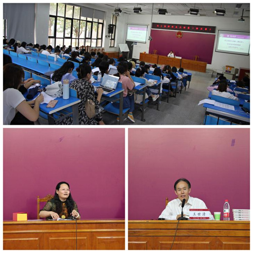 王世清主任从了解同学们的职业规划进入主题,围绕律师行业展开详细的讲解。他表示,希望法学学生明白好律师的标准是什么?要成为一名好律师应该做哪些准备?他说到,在推进依法治国的进程中,律师、法官、检察官等是法律共同体的重要组成部分,各自发挥应有的作用。结合自己多年从事律师及律师管理工作的经验,他指出,作为一名律师,要深入了解历史,要看到国家的发展前景和发展趋势;要有底线思维;要努力维护公平与正义、捍卫法律的尊严;细节决定成败,要把细节做到极致;要坚持自己的选择。讲座中,王世清主任赠送给同学们42位资深律师的办案实录《天平上的博弈》,希望可以增强同学们的实务能力。此外,他提出要与法学院紧密合作,培养一批专业化的实力型人才。最后,王世清主任鼓励同学们,要脚踏实地,练好内功,为法治国家建设多做贡献。