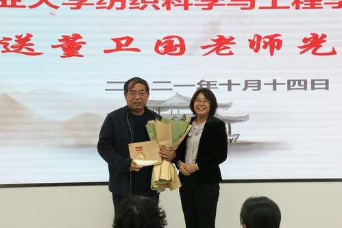 2021年10月14日,一场温馨而隆重的教师荣退仪式在纺织科学与工程学院E112报告厅举行,全院教师共同欢送为纺织事业奉献37年芳华的董卫国老师。活动由常务副院长刘雍主持。