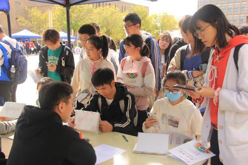 本次活动包含“自我探索”“职业世界探索”“决策方法区”“未来探索区”四大模块,其中涵盖了“年龄检测中心”“职业猜猜猜”等13个游戏。现场同学可以获得生涯咨询师的指导,还可以领到智联招聘为我校学生免费提供的求职训练营课程。同学们参与热情高涨,现场每个活动前都排起了长队。在志愿者的引导下,大家认真完成每个活动。