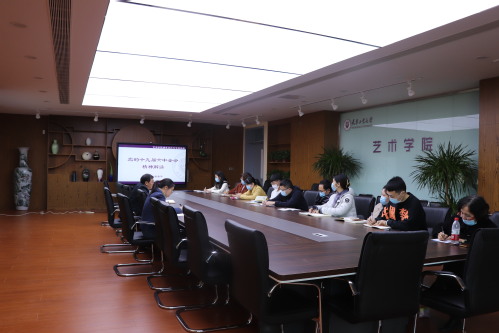 随后,参会老师围绕自己对全会精神的学习理解进行交流。团委书记兼学办主任石恩说到,要从“上接天线”“下接地气”两方面做好辅导员工作。既要有坚定的政治立场,不断提升自身科研、教学等业务能力;又要根据艺术学院学生特点,找出相适应的工作方法,确保全会精神落地落实。