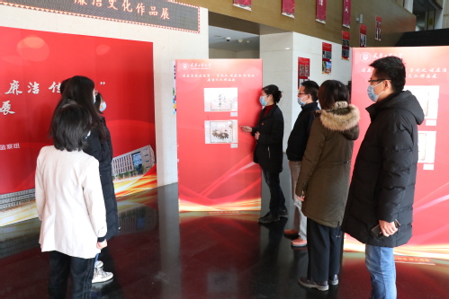 2021年12月30日上午,机关党委宣传部党支部组织全体党员参观了行政中心一楼大厅展出的学校“清廉学校建设”暨“学党史 颂廉洁 传家风”主题廉洁文化作品展。