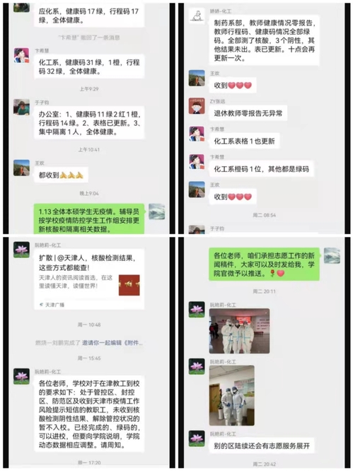 在这次同时间赛跑、与疫情竞速的抗击“奥密克戎”战役中,每个人都不是旁观者,每个人都有自己的“岗位”需要坚守。抗击疫情的背后有着每一个奉献者风雨同舟的努力和攻坚克难的毅力,更有着每个奉献者无比坚定的信念和无畏向前的态度。让我们大家携手同心、奋力拼搏、向阳而行、迎接春日!天津加油,战“疫”必胜!(审稿:化学工程与技术学院 阮艳莉 编辑:党委宣传部 柳婷)