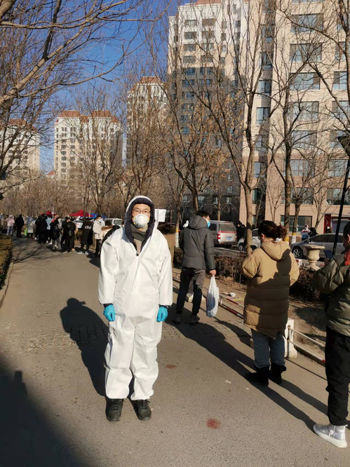 硕士第四党支部书记李晓晖,在津南区双港镇尚科家园社区参与志愿活动,配合社区完成第二轮核酸采集引导任务。尽管当天气温达到零下8度,还伴有5级大风,他说:“我还会继续参与志愿活动,为天津防疫贡献自己的一份力量,希望疫情早日结束!”