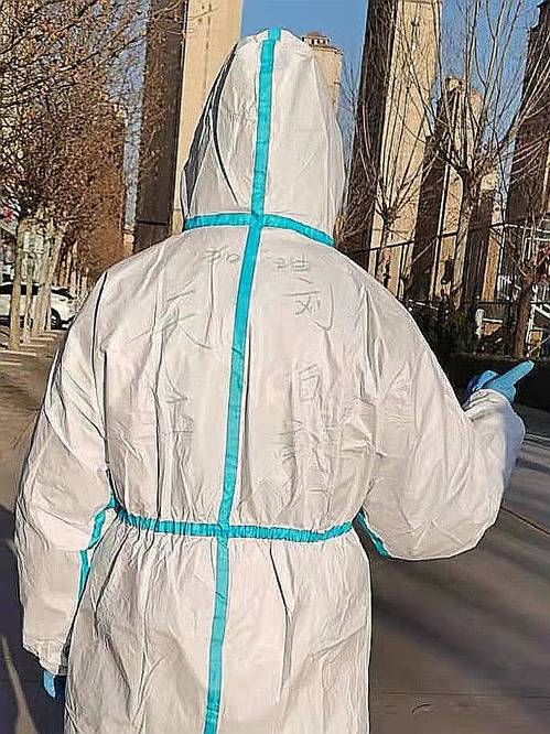 教师党员刘伯豪,是一位95后辅导员,他所在的社区为疫情管控区。自1月8日疫情暴发以来,他一直投身战疫一线,从刚开始的协助社区完成扫码、测温登记,到随后参与核酸检测全流程工作。他说:“我特意将天工大的名写在我的防护服上,就是要时刻提醒自己是天工一分子,在‘大考’面前要用行动为学院、学校争光!”