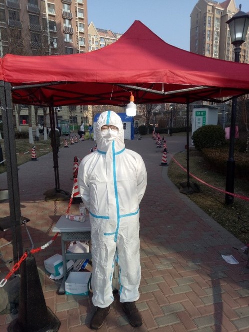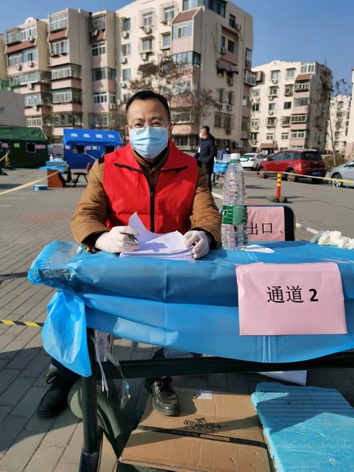 邓鹏老师1月14日下午同社区工作人员、志愿者一起,在南开区华苑安华里社区开展第三次核酸检测场地布置工作。15日上午,他按照社区居委会安排进行维持秩序、对居民的个人信息进行核对等工作。邓鹏老师说,疫情就是命令,防控就是责任。作为一名普通的党员志愿者,尽力做好相关工作,有一份光,发一份热,天气很冷,但心里很暖,愿人人平安,山河无恙。