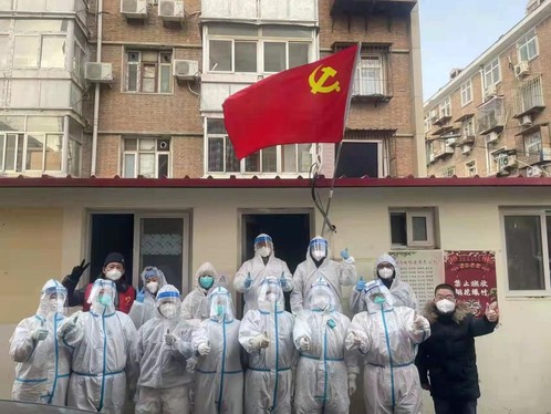 疫情就是命令,防控就是责任。天工红桥临时党支部严格落实疫情防控有关工作要求,与社区工作者、医护人员密切协作,不畏严寒、主动作为,协助开展值班值守、入户排查、核酸检测、便民服务、物资配备、消毒消杀等工作,全力投身津门疫情防控阻击战。