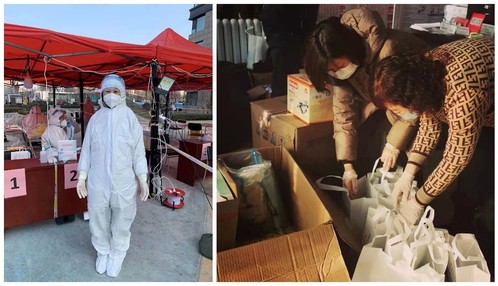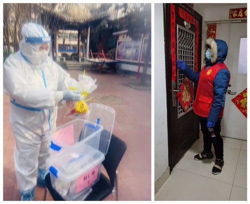 艺术学院党员石娜娜同志在红桥区三条石街道北开花园社区下沉,参加疫情防控志愿者服务活动。培训学习、协助社区物资分配、追踪小区居民核酸检测的情况、报备居家隔离居民的体温、协调他们的生活需求等等都是她的日常工作。多次核酸检测,让她已经习惯四点起床、五点到岗,穿脱防护服也越来越麻利。四筛遇到大寒节气,她穿着防护服,口罩里全是冰冷的水,面罩上的水也结了薄冰,手脚耳朵都冻得不行,但是她和身边的志愿者们无人退缩,争分夺秒完成手头的工作。