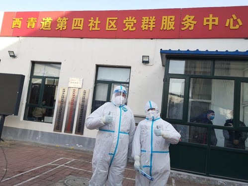 物理科学与技术学院党员李一凡同志和环境科学与工程学院党员王玉辰同志均下沉到邵公庄街道西青道第四社区参与疫情防控工作,主要负责核酸检测现场以及上门入户的被检测者信息录入工作。疫情当前,医护工作者冲锋陷阵,党员干部更要“上战杀敌”。他们说:“虽然每天天不亮就要爬起来,但是医护人员和社区工作人员远比我们辛苦得多。所有人都在用自己的方式抗击疫情,我们相信在我们的共同努力下,天津人民一定能取得战疫的胜利!”