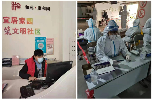 纺织科学与工程学院党员张昊同志下沉至红桥区西沽街水木天成阁林园社区,连续参加多轮核酸大筛志愿工作。阁林园社区规模大,45栋楼近两千户居民,检测工作异常繁重。张昊同志全面参与社区核酸检测的策划、物资准备及现场组织工作。由于社区老人较多,张昊同志还主动承担入户检测工作,为社区核酸检测工作的高效进行贡献了自己的力量。