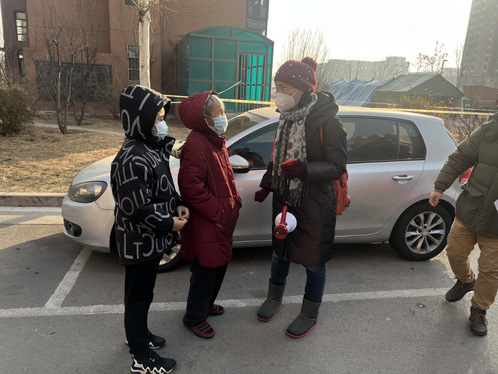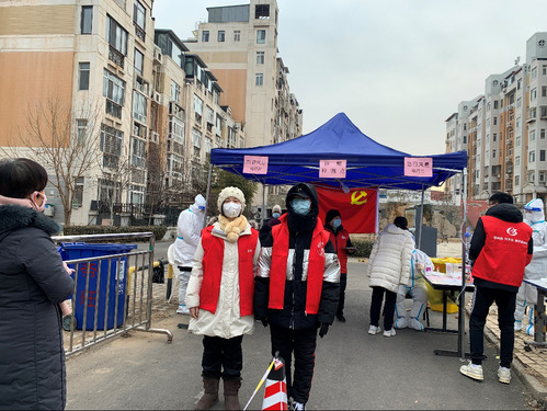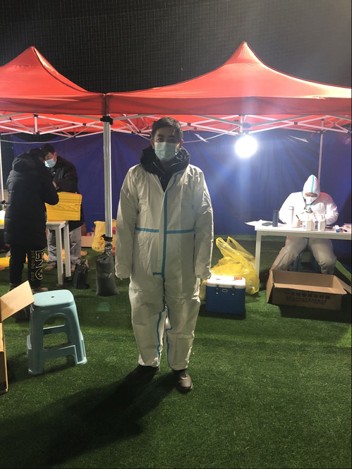 季益萍,民盟盟员,纺织科学与工程学院教师,1月15日和20日参加河东区帝旺小区的第三、第四次核酸筛查工作,负责安排和协助群众有序快速进行核酸检测、收尾喊楼、贴条、照相。她说:在这个夹杂着疫情的凛冽寒冬,每一位平凡的志愿者挺身而出,努力做好大筛工作。一次次的“逆行”、一个个暖心的瞬间,都激励着我们共渡难关!我们风雨同舟!我们一路相伴!