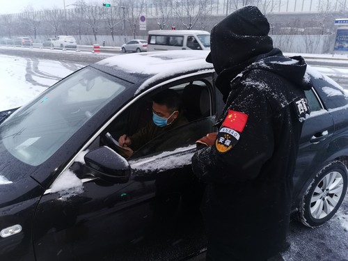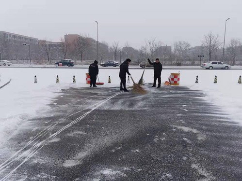 在我校干部教师奔赴津南区支援抗疫工作出发的时候,我们能做的就是献上真情的祝福。支援津南抗疫教师胜利凯旋的时候,我们会做的是表达深深地感谢。支援人员返回当天,天津突降大雪,校卫队紧急组织人员清扫进校路段,有力保证支援人员车辆安全进校。校卫队马浩笑着说:“听说支援津南抗疫的人员今天返回,我们从心底里感到高兴,连扫雪都更有劲了。”为所有参与防疫工作努力付出的人敬个礼,这是天工保卫人的浪漫。