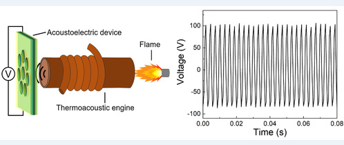 为了证明纳米纤维高温声电器件对热声波转换的可能性,该团队自制了一个微型热声发动机作为声源,与纳米纤维声电器件联用进行研究。结果显示:一个9 cm2的声电器件,可成功将热声发动机产生的热声波转换为102 V的电压,功率密度高达324 mW/m2。所产生的电能可以直接驱动至少30盏商业LED和为锂电池充电。