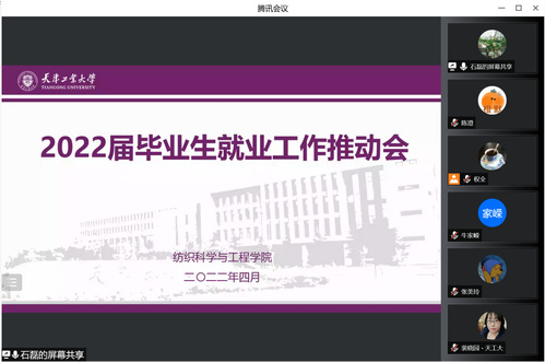 为扎实做好党中央、国务院“六稳”“六保”重要任务,贯彻落实2022届全国普通高校毕业生就业创业工作网络视频会议、学校2022届毕业生就业推动会精神,全力做好学院2022届毕业生就业工作,推动全体毕业生高质量就业,4月11日,纺织科学与工程学院召开2022届毕业生就业工作推动会,学院党政领导班子成员和全体教师参加会议。