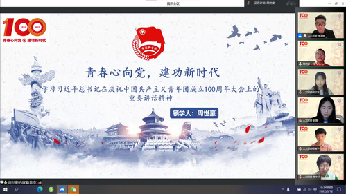 会前,全国“青马工程”高校班学员李龙锐同学向大家说明了召开此次座谈会的目的和意义。晚上七时,会议在《光荣啊,中国共青团》的歌声中拉开序幕。随后,天津市“青马工程”学员周世豪同学向大家作了领学汇报,他分别从“以史为鉴”“开创未来”“殷殷习语”三个方面解读了习近平总书记在庆祝中国共产主义青年团成立100周年大会上的重要讲话精神。