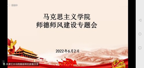 为进一步推动“迎盛会、铸忠诚、强担当、创业绩”主题学习宣传教育实践活动工作,加强学院教师队伍思想政治和师德师风建设工作,马克思主义学院于2022年6月2日召开师德师风建设工作专题会。会议由学院党委书记聂丽琴主持。