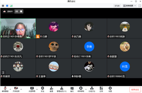 近日,纺织科学与工程学院通过线上会议召开了首届“本硕博”项目学生座谈会,学院副院长荆妙蕾、巩继贤出席了座谈会,科研、研究生管理办公室主任石睫及该项目在读全体学生参加了会议。