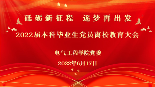 砥砺新征程,逐梦再出发。本次毕业生党员教育大会为毕业生党员上了离校前最重要的一场党课,强化了党员身份意识,提高了党性修养,引导毕业生党员把人生理想融入党和人民事业,不忘初心,砥砺前行,以奋斗之青春书写人生华章。(审稿:电气工程学院 杨蕾 编辑:党委宣传部 胡敏)