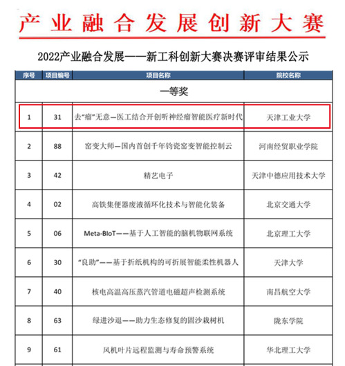 由我校电子与信息工程学院研究生王雪纯、张琢、赵欢等组成的“精英医工”团队,凭借“去瘤无意-医工结合开创听神经瘤智能医疗新时代”项目,在与北京理工大学、北京航空航天大学、北京邮电大学、天津大学等高校同台竞技中,斩获2022年产业融合发展——新工科大赛全国一等奖(排名第一)。