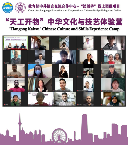 2023年1月9日下午,由教育部中外语言交流合作中心主办、天津工业大学承办的“汉语桥”天工开物—中华文化与技艺体验营举行线上开营仪式。我校国际交流与合作处处长、国际教育学院院长姜亚明,国际教育学院副院长王熙、布基纳法索首家孔子学院—波波迪拉索工业大学孔子学院中方教师代表、线上体验营教师代表等出席,来自全球22个国家的133名海外营员相聚云端参加开营仪式。