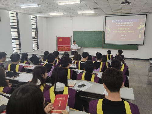 此次毕业生党员离校教育是材料科学与工程学院党委深入开展学习贯彻习近平新时代中国特色社会主义思想主题教育的具体体现,希望毕业生党员能够以更加笃定的心志、坚忍的意志、蓬勃的斗志在新岗位上不断建功立业,在实现中国式现代化新征程中阔步前行,以青春之我,担时代之责!