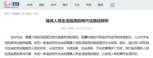 当今社会,提高人民生活品质已成为各国共同的目标。随着科技的不断进步和经济的快速发展,人们对于生活的要求也越来越高。探索一条适合现代社会的提高人民生活品质的路径显得尤为重要。因此,通过深入研究现代社会的发展趋势和人民的需求,从经济发展、科技创新、社会保障、文化教育等多个方面,探讨全面提升人民生活品质的解决方案,找到一条适合现代社会的提高人民生活品质的路径,以实现人民的美好生活愿景。