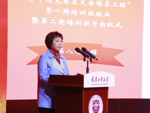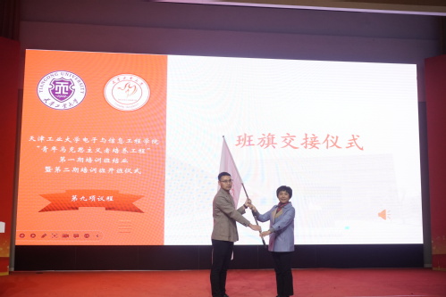 院党委书记黄洁向院团委书记薛高建授予电子与信息工程学院第二期青马培训班班旗。院青马第二期培训班学员梁宇航作为新学员代表发言。梁宇航表示,新一期青马班学员将坚定理想信念,将以高标准、严要求来约束自己、激励自己,刻苦学习、遵规守纪、善思笃行,勇担时代重任。