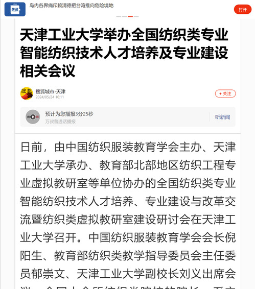 搜狐新闻丨天津工业大学举办全国纺织类专业智能纺织技术人才培养及专业建设相关会议