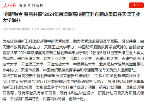 为充分挖掘新工科建设过程中的优秀成果,助力优秀建设经验互学互鉴、融合共享,由天津市教育委员会主办、天津工业大学承办、中国纺织服装教育学会支持的“创新融合 智慧共享”2024年京津冀高校新工科创新成果展于6月12日至6月14日在天津工业大学火热举办。来自天津大学、北京工业大学、河北工业大学、天津科技大学、天津中德应用技术大学、天津理工大学、天津城建大学、中国民航大学、北京服装学院等京津冀高校参与协办。天津市教委、中国纺织服装教育学会和京津冀高校有关负责人出席活动。