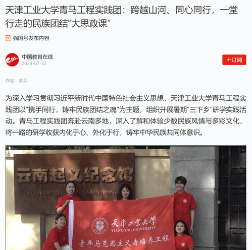 学习强国丨天津工业大学青马工程实践团:跨越山河、同心同行,一堂行走的民族团结“大思政课”