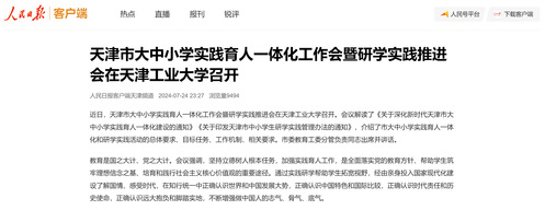 近日,天津市大中小学实践育人一体化工作会暨研学实践推进会在天津工业大学召开。会议解读了《关于深化新时代天津市大中小学实践育人一体化建设的通知》《关于印发天津市中小学生研学实践管理办法的通知》,介绍了市大中小学实践育人一体化和研学实践活动的总体要求、目标任务、工作机制、相关要求。市委教育工委分管负责同志出席并讲话。