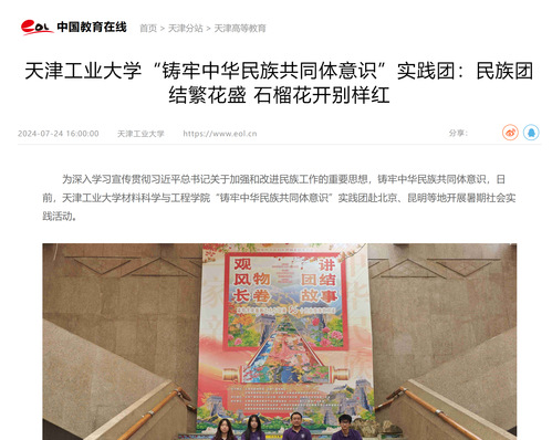 各民族只有像石榴籽一样紧紧抱在一起,民族团结进步之花才能长盛不衰。接下来,天津工业大学实践团将继续深入各少数民族地区开展社会实践调研,将社会实践的成效转化为奉献国家、服务人民的实际行动,努力成长为堪当民族复兴重任的时代新人,用火热的青春激荡起民族复兴的磅礴力量。