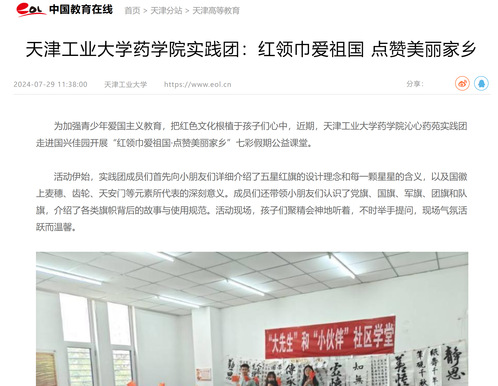 中国教育在线丨天津工业大学药学院实践团:红领巾爱祖国 点赞美丽家乡