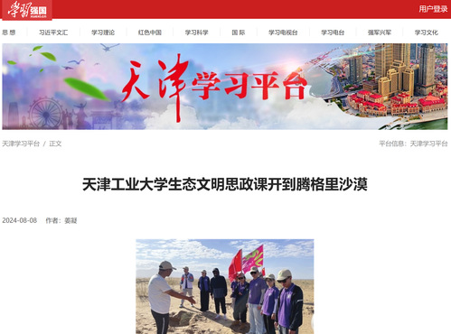 由天津工业大学卓越管理者培养计划学员组成的“‘植’此青绿当先锋”实践团,连日来在内蒙古自治区阿拉善盟开展绿色科考、生态文明宣讲和种树植心行动,以实际行动践行生态文明理念、助力乡村振兴。
