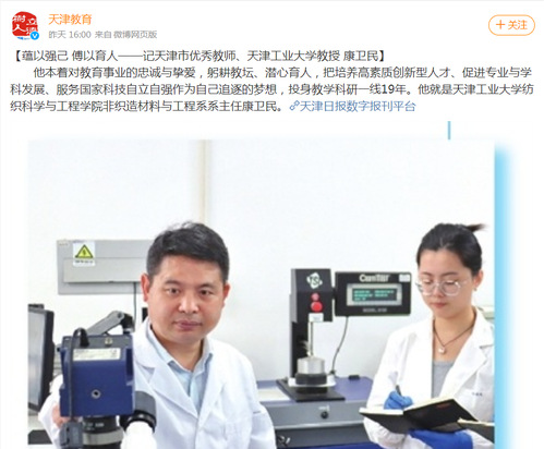 他本着对教育事业的忠诚与挚爱,躬耕教坛、潜心育人,把培养高素质创新型人才、促进专业与学科发展、服务国家科技自立自强作为自己追逐的梦想,投身教学科研一线19年。他就是天津工业大学纺织科学与工程学院非织造材料与工程系系主任康卫民。