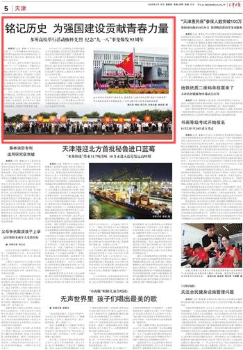 9月18日,天津音乐学院举行以“铭史承志 强国有我”为主题的爱国主义教育活动,通过集体脱帽默哀、“国旗下的微团课”等环节,引导青年学子厚植爱党爱国情怀。