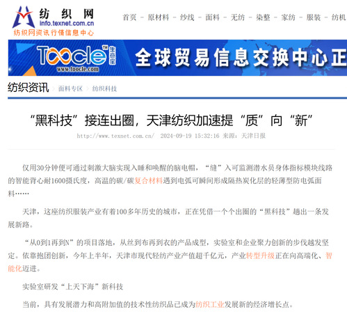 “黑科技”接连出圈,天津纺织加速提“质”向“新”