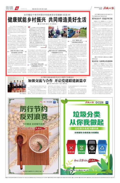 近日,天津市卫生健康委通报了天津市健康细胞培育行动2023年度健康(促进)场所评估结果,太平镇后十里河村经区级初评、专家评分和市级现场复核,因评审成绩突出被评为典型示范健康(促进)村。