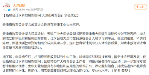 天津市教育会计学会成立大会近日在天津工业大学召开。