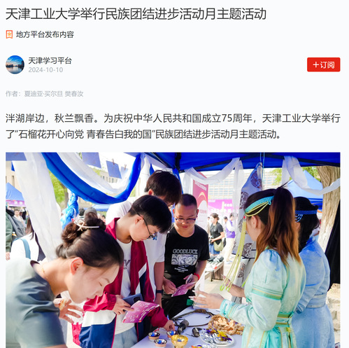 泮湖岸边,秋兰飘香。为庆祝中华人民共和国成立75周年,天津工业大学举行了“石榴花开心向党 青春告白我的国”民族团结进步活动月主题活动。