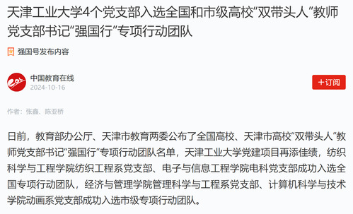 学习强国丨天津工业大学4个党支部入选全国和市级高校“双带头人”教师党支部书记“强国行”专项行动团队